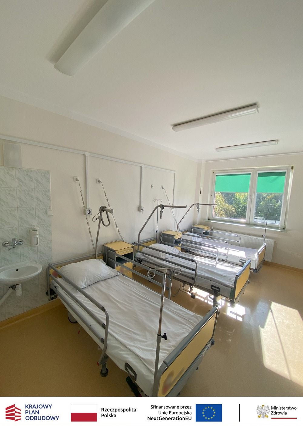 Uprzejmie informujemy, iż z dniem 15 października 2025 r., ulega zmianie lokalizacja Oddziału Geriatrii SPZOZ we Włodawie. Oddział zostaje przeniesiony z budynku D szpitala do budynku C na piętro I. Odwiedziny pacjentów obywają się tak jak do tej pory. Zmiana lokalizacji związana jest z dalszym etapem realizacji projektu "Rozwój infrastruktury SP ZOZ we Włodawie na potrzeby opieki długoterminowej i geriatrycznej osób starszych" realizowanego w ramach Krajowego Planu Odbudowy i Zwiększania Odporności.